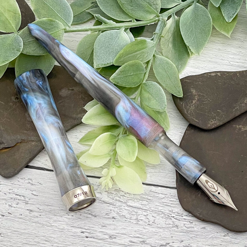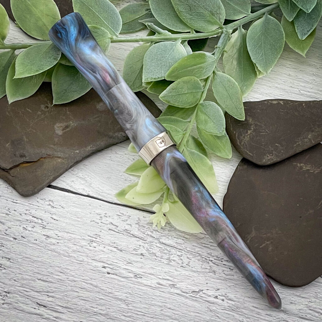 This pen is made from a fantastic material coming from a material maker that is pretty new to us! This material was made by Lisa Marie Bradley with Pourly Controlled. The material is called Cold Plasma, and it’s definitely a stunner! Expect to see more and more Edison pens made from Lisa Marie’s materials!