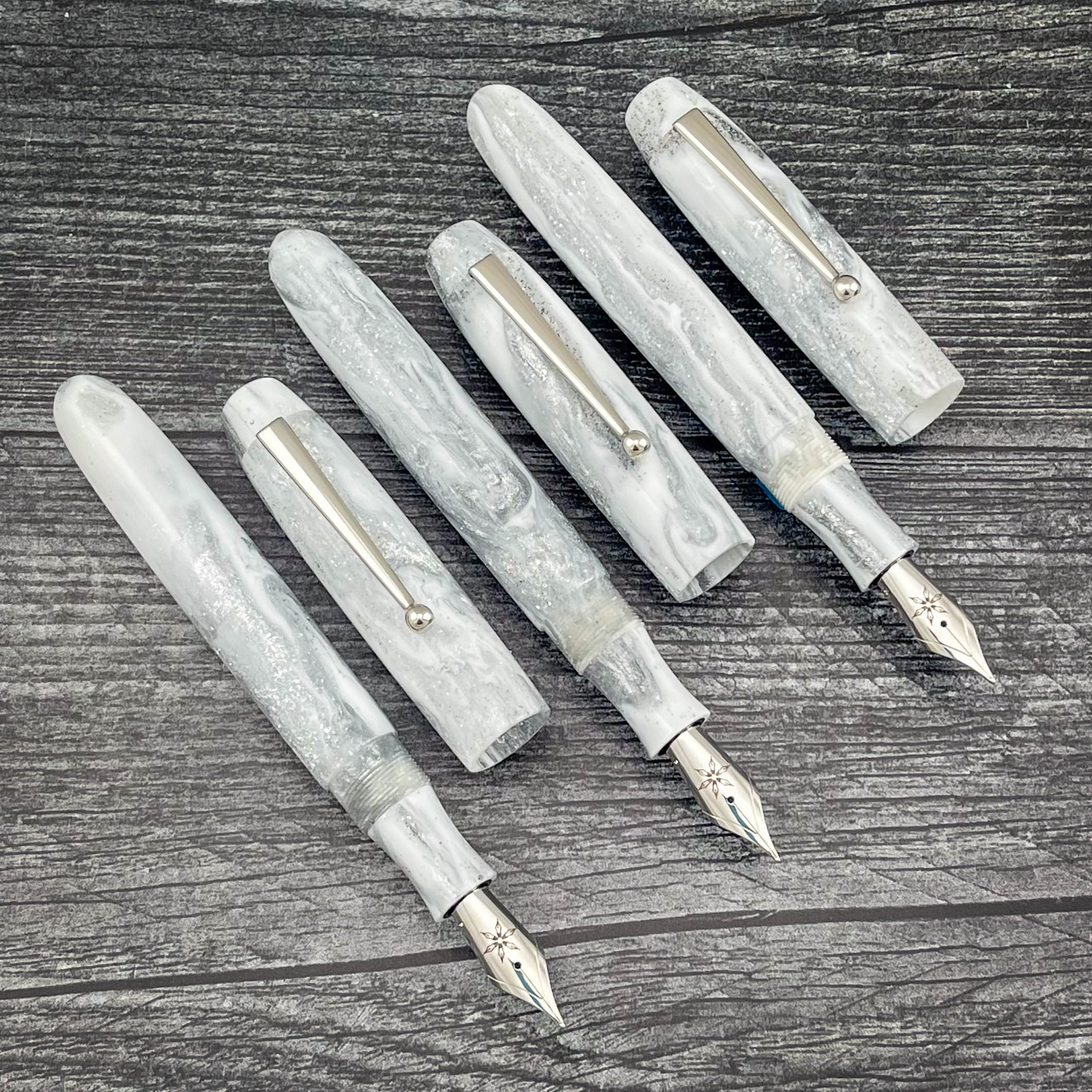 These pens are converter fillers. They will come with a Steel nib in your choice of EF, F, M, B, BB, 1.1mm, 1.5mm, Extra Fine Flex, or Fine Flex tip sizes.
