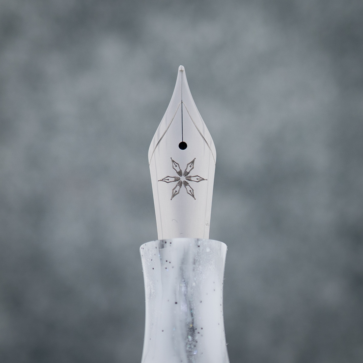 As part of the Holiday Theme, we were able to put together a really neat custom engraving on the nib. This engraving is a snowflake made up of Edison logos!