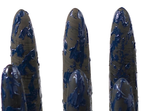As with the Pearl project, the shibo urushi step is the first step that is unique to the the decorative technique for these pens. The technique involves applying a layer of shibo-urushi unevenly. Shibo urushi is urushi mixed with a stiffener, or thickener, which in this case is also egg whites. Once the egg whites are thoroughly mixed in to the lacquer, it is applied in a distinctive pattern onto the surface of the pens, making sure that the layer is not too thick. The shibo urushi mixture for this project uses a blue pigmented lacquer rather than the black of the Pearl Project. After application, the layer is cured for 72 hours at a low humidity then for an extended period of several days in the standard humid curing environment.