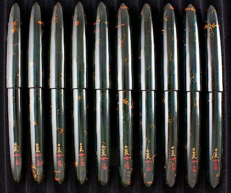 The pens are off the lathe and rough sanded. They are now on the way to Hakumin Urushi Kobo for lacquer treatment.